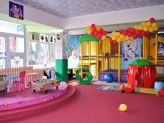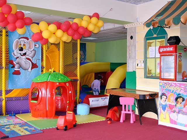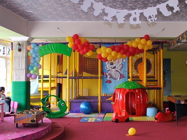Dotat cu echipamente de joacă de ultimă generaţie, modular cu piscina cu bile, gonflabil, o scenă special amenajată. |